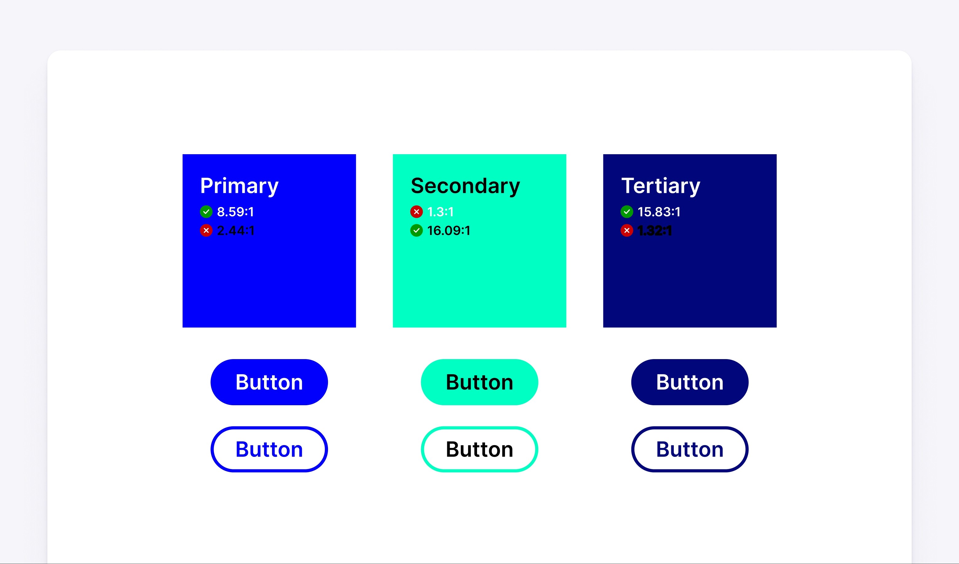 Using this system we could create components with much richer visual hierarchy (using tints and shades of brand colours) while ensuring contrast remained predictable and WCAG compliant. This uniformity is easily communicated by desaturating each scale.
