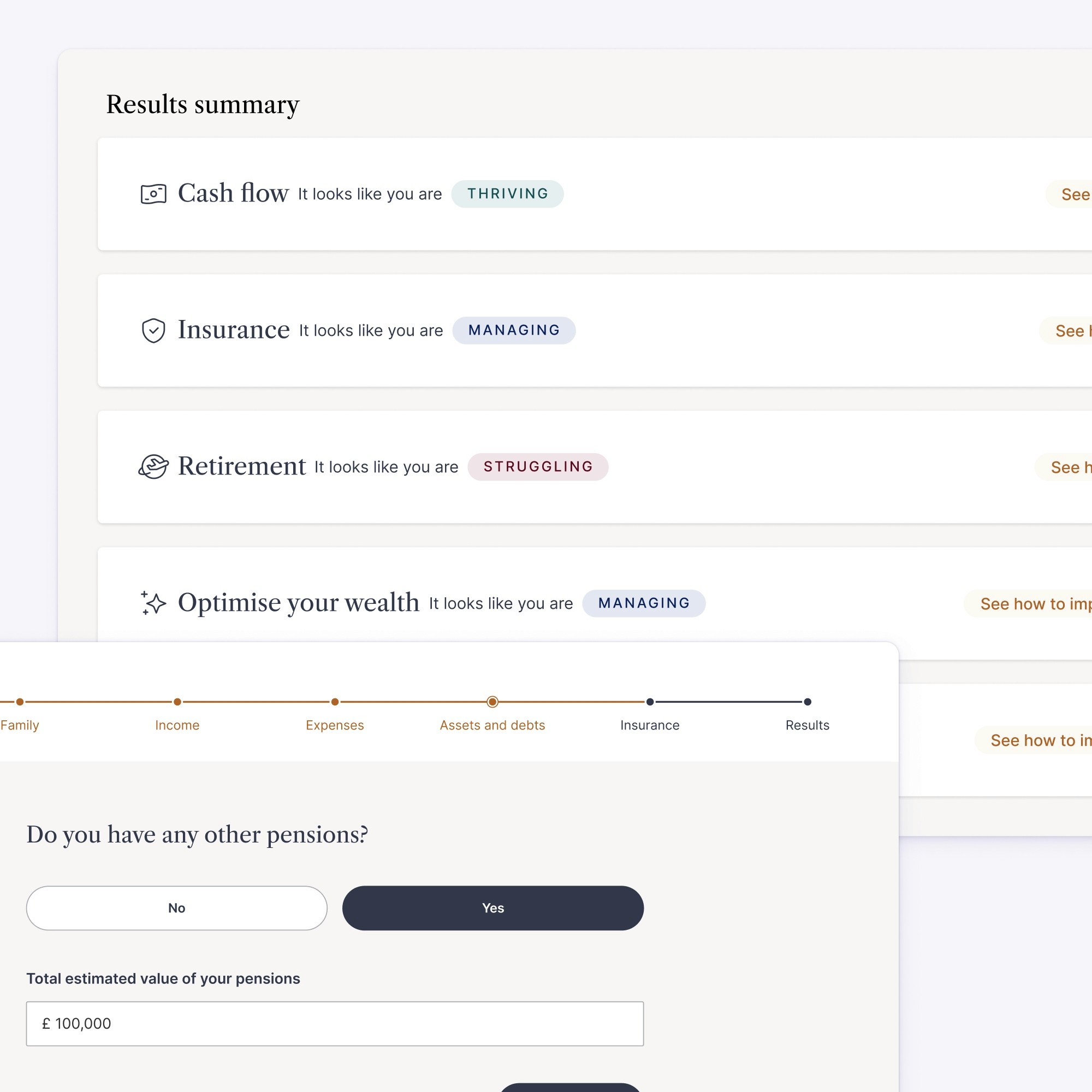 Ignition initially built a D2C business before pivoting to a B2B white-label "hybrid" financial advice platform. This evolution meant that when I joined, the team had very mature and capable technology, but lots of legacy UI that needed refactoring into a system that could be easily restyled when new clients came onboard.