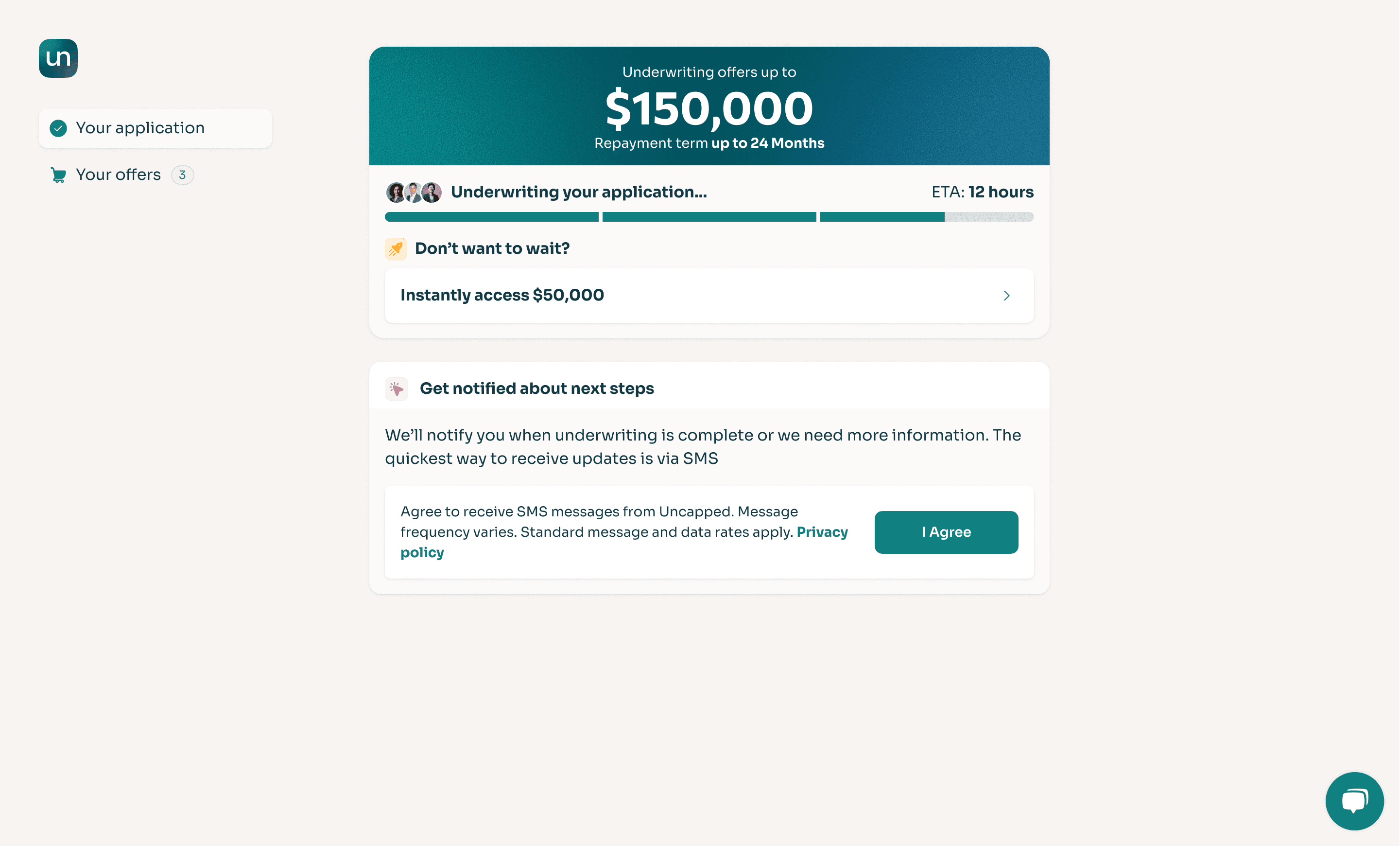 We knew that customer hated waiting for underwriting. So as part of the new end of application experience I designed progress updates which provided customers with live information about the status of their application and when they could expect an offer.