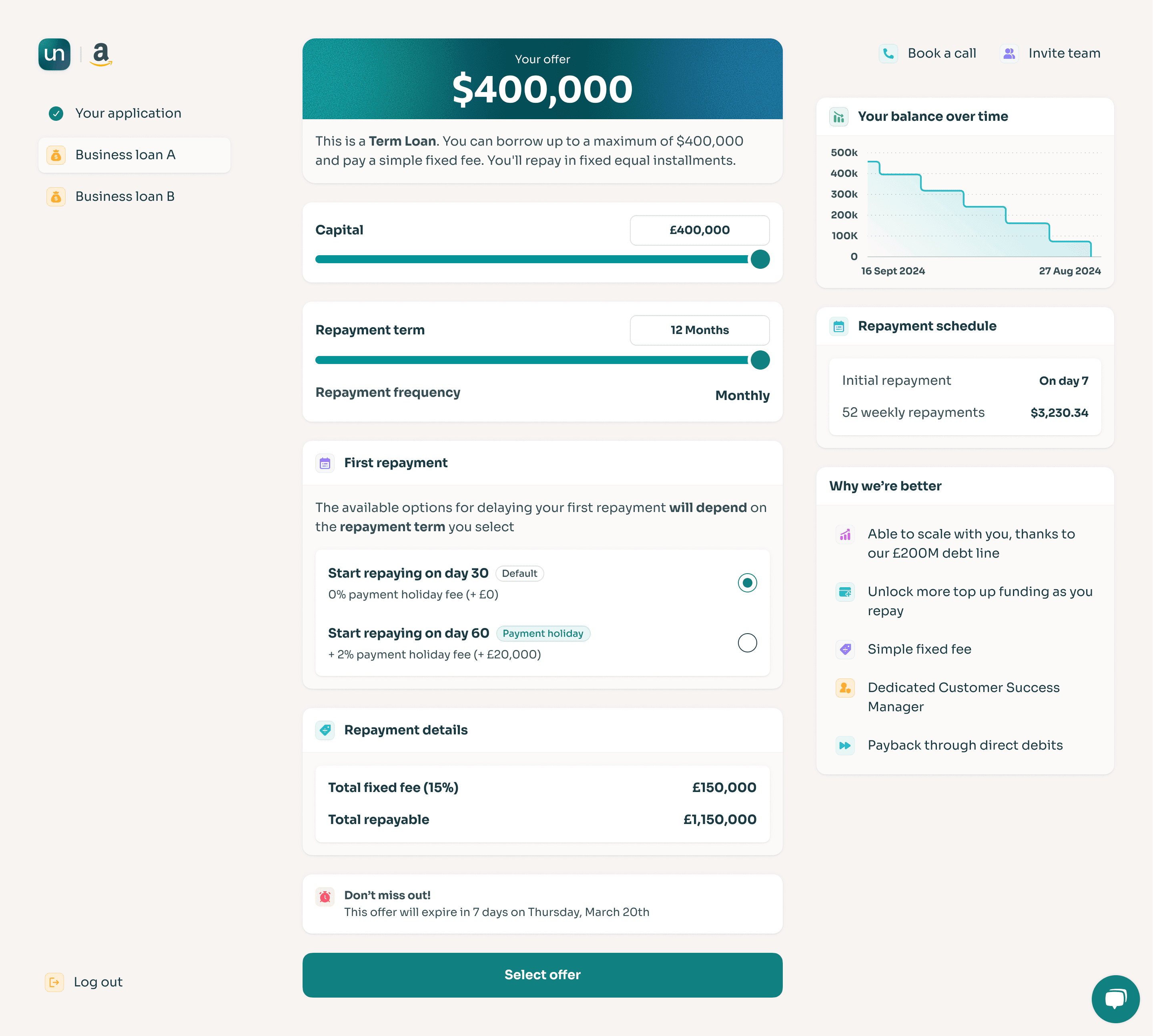 Uncapped are a B2B alternative funding provider using open banking and other third-party connection APIs to underwrite lending for online ecommerce and SaaS businesses.