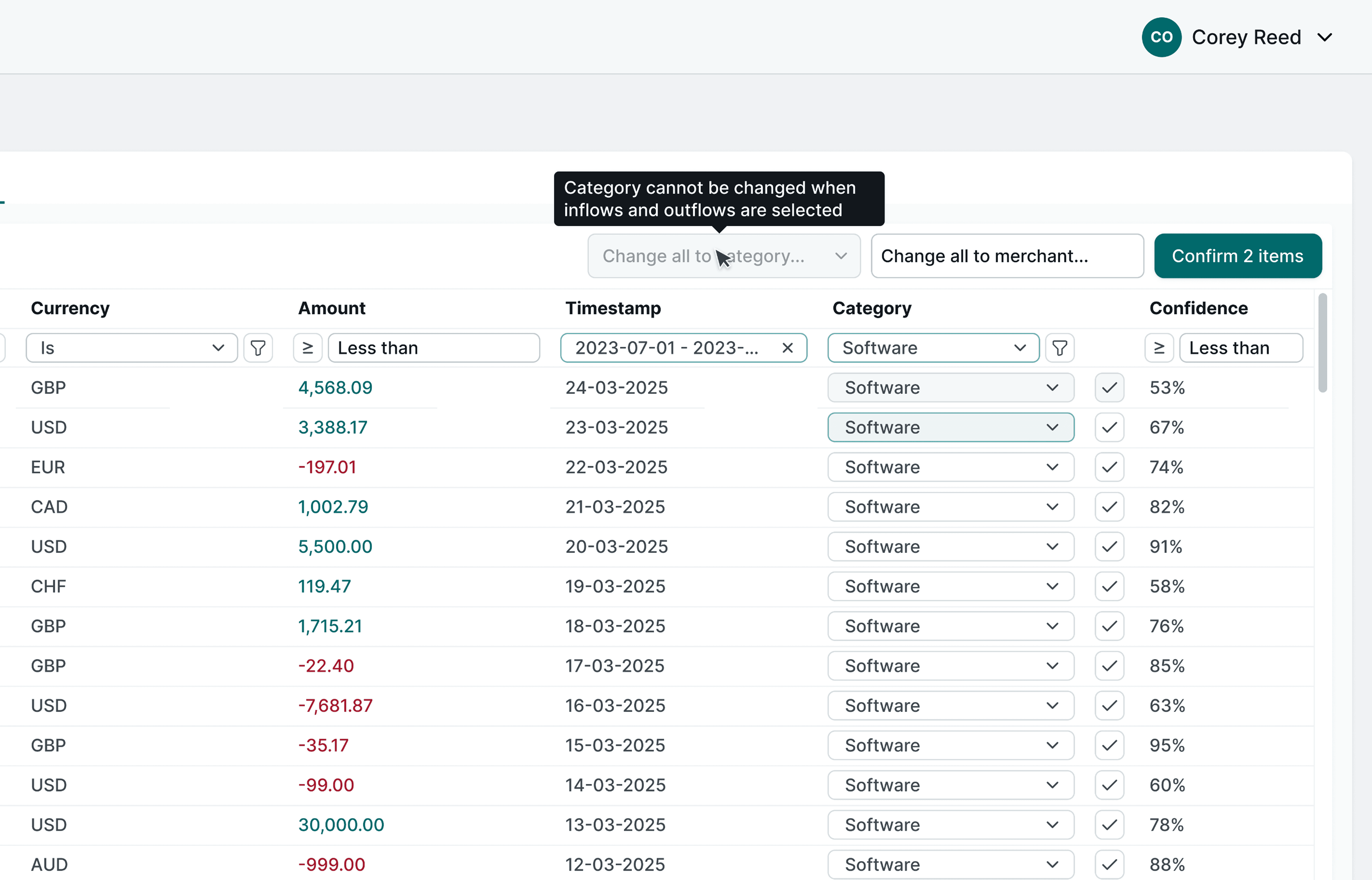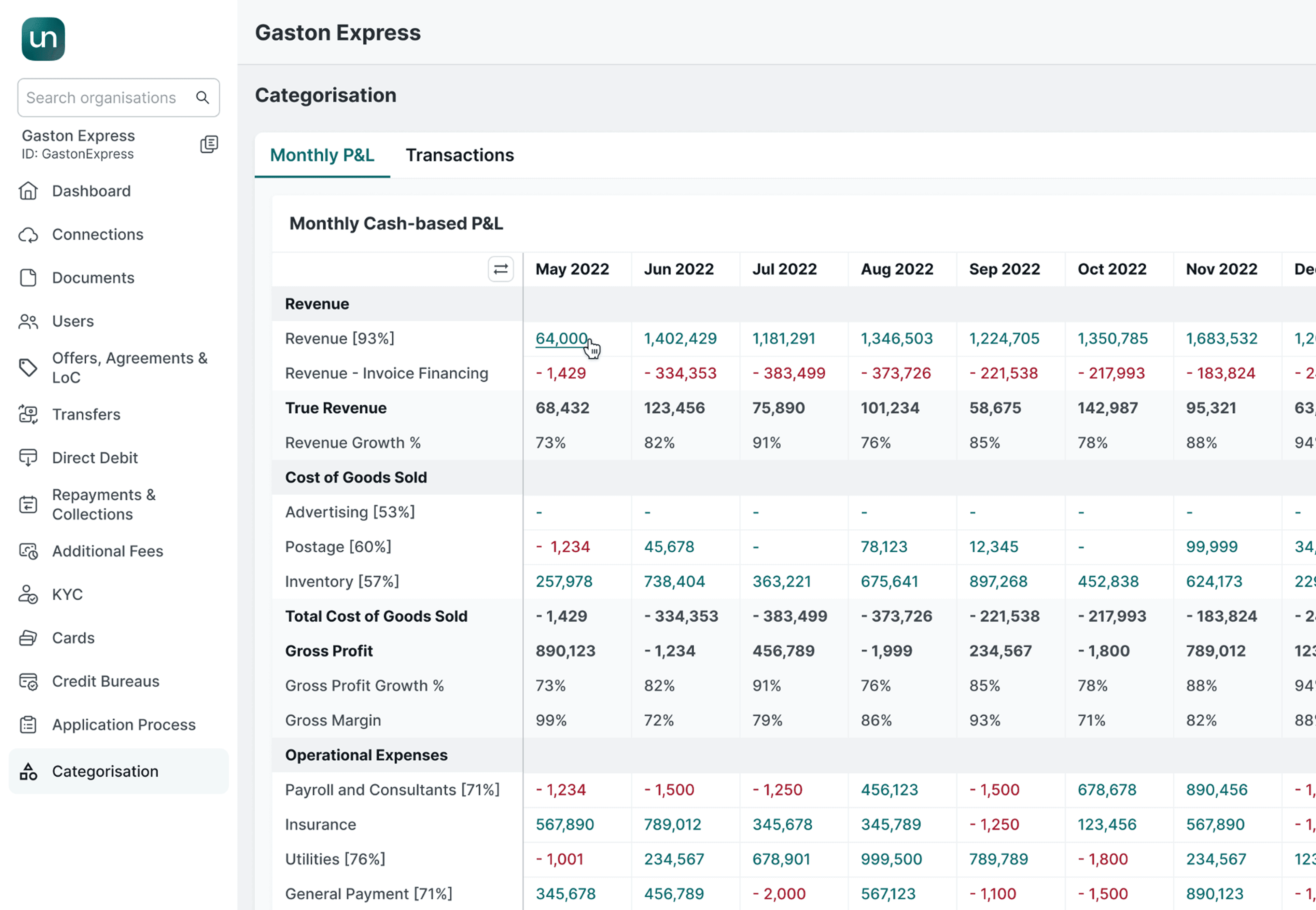 We used the new components to design in-house underwriting tools like transaction categorisation and filtering to help underwriters make sense of messy transaction data